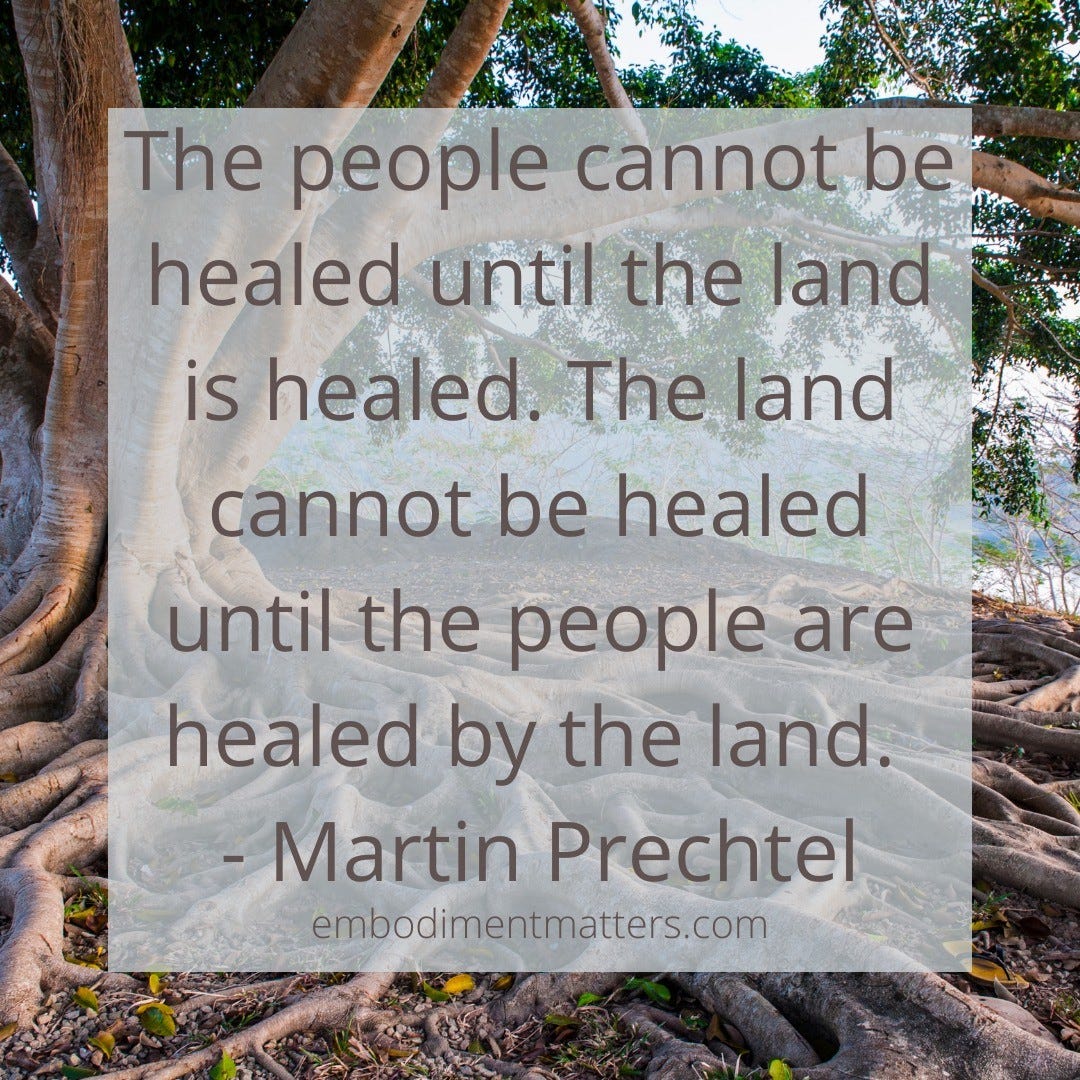 3. This line from Martín Prechtel is one I carry with me like a secret passageway I can step through in any moment. “The people cannot be healed until the land is healed. The land cannot be healed until the people are healed by the land.” I aspire to keep deepening this way of being. To keep remembering how to be healed by the land.
