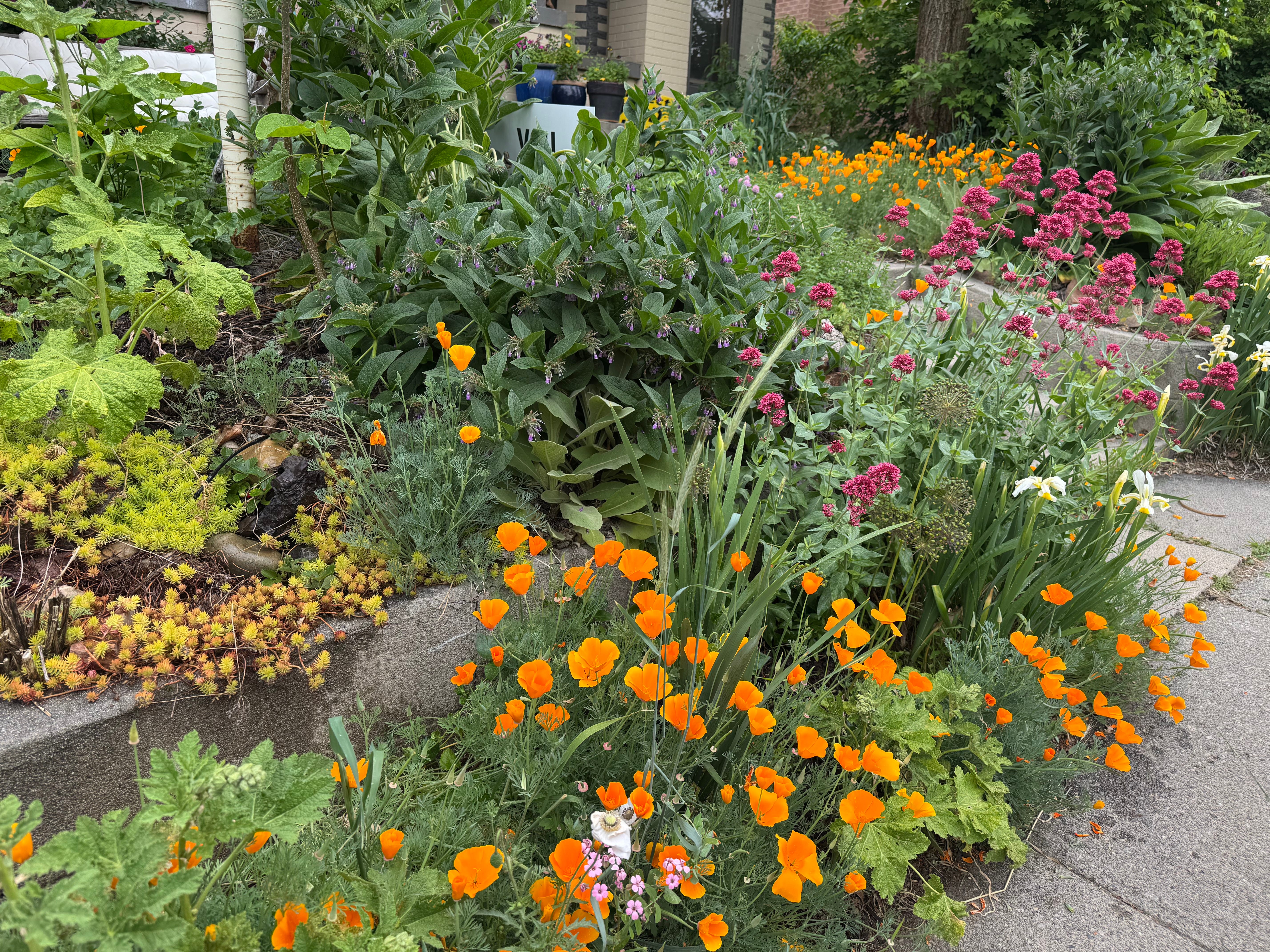 When I read these words I burst into tears. These are my kin too! I felt so suddenly and immediately connected: “I keep company with roses and tulips and hydrangea and daffodils and crocuses and snapdragons and hummingbird mint and lemon balm and bee balm and mullein and sunflowers and coreopsis and irises and hollyhocks and jupiter’s beard and calendula and strawberries, raspberries, blackberries, elderberries, gooseberries, and two young hawthorn trees and the nectarine tree with tiny pink blossoms, and peach trees, and cherry trees and apple trees and a pear tree and hazelnut trees and grapevines and gaura and mugwort and lavender and the neighbor’s holy linden tree and sage and rosemary and sweetgrass and grape hyacinth and goldenrod and echinacea and California poppies and Icelandic poppies and I hope the big red poppies survive this dry winter and burdock and dandelion and rhubarb and chard and arugula and beds where I can grow peas and potatoes and peppers and tomatoes and lettuces and cabbage and kale and squash and kohlrabi and tomatillos and these plants, my companions, my friends, my teachers, my healers, my beauty ballast in an insane world, they are there, in the ground, emerging from the ground, going back to ground. Healed by the land.”