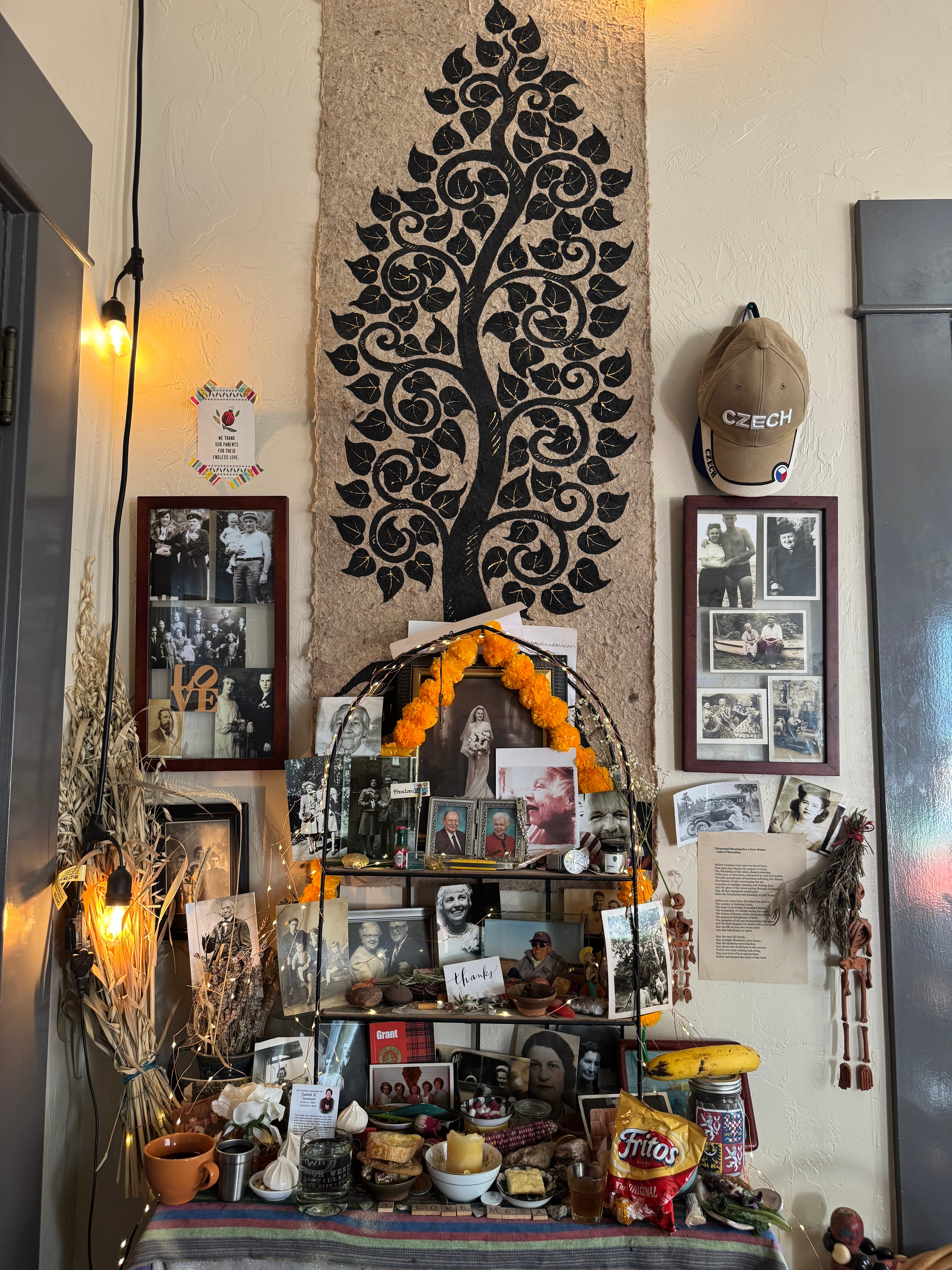 Our ever-evolving ancestor altar. As people keep joining the ranks, I realize I need a much bigger shelf!